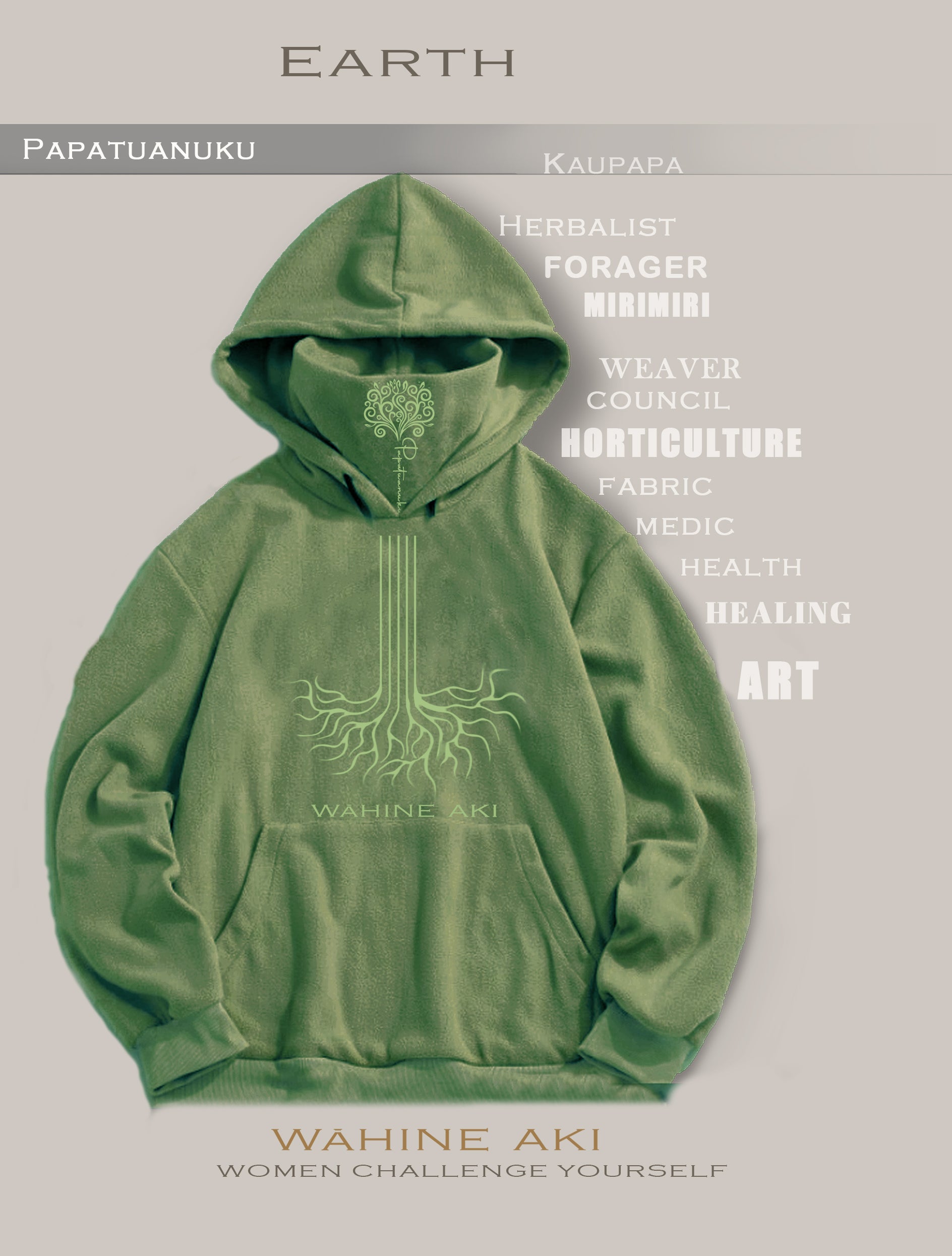 Papatuanuku celebrates women who are healers, Rongoa, Mirimiri, artists and growers. Designed for those who forage from the land, nurture plants or herbalists.